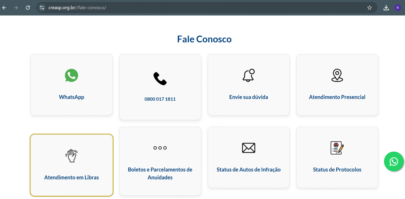 O atendimento on-line funciona da mesma forma: o usuário deve acessar o site do Crea-SP e clicar no ícone de atendimento em Libras. O acesso o direciona a um intérprete, que faz a ponte com o atendente do Crea-SP em tempo real.