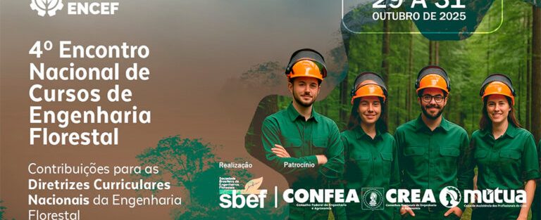 De 29 a 31 de outubro, a sede do Crea-SP à avenida Angélica, 2.364, na capital paulista, será palco do 4º Encontro Nacional de Cursos de Engenharia Florestal (ENCEF), realizado pela Sociedade Brasileira de Engenheiros Florestais (SBEF) com o apoio da Coordenadoria Nacional de Câmaras Especializadas de Engenharia Florestal (Conef) do Confea.